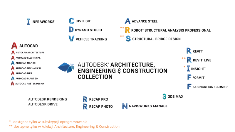 * dostępne tylko w subskrypcji wybranego oprogramowania Autodesk
