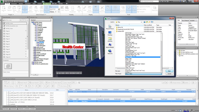 Navisworks potrafi otwierać pliki z zarówno z programów firmy Autodesk, formatów neutralnych jak i szeregu programów innych firm jak np.: Bentley, Graphisoft, AVEVA, COADE, Dassault System, Google, Intergraph, PTC, Solidworks, Tekla, Siemens.
