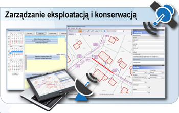 Administracja i dokumentacja obiektów sieci wodociągowych i kanalizacyjnych podlegających konserwacji wraz ze związanymi z tym zadaniami. Zintegrowane planowanie eksploatacji i konserwacji, biblioteki przebiegów konserwacji, raporty i zlecenia. Wsparcie planowania konserwacji, związanej z działaniami cyklicznymi i uzależnionymi od aktualnego stanu technicznego obiektów. |