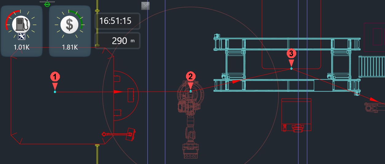 - Umiejscowienie zasobów w odpowiednim położeniu w wirtualnej fabryce.