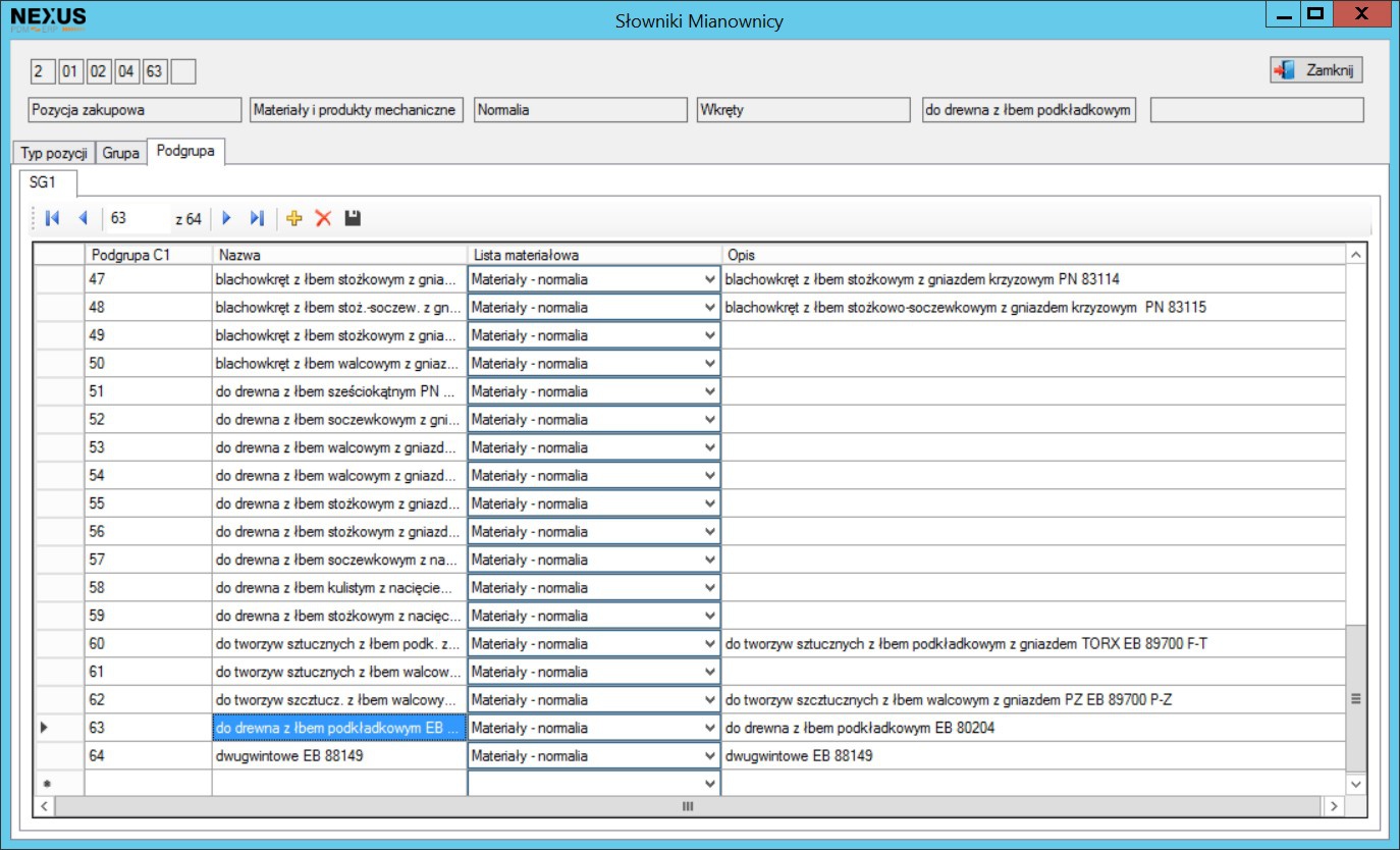 - stworzeniu indeksów materiałowych dla wszystkich elementów.